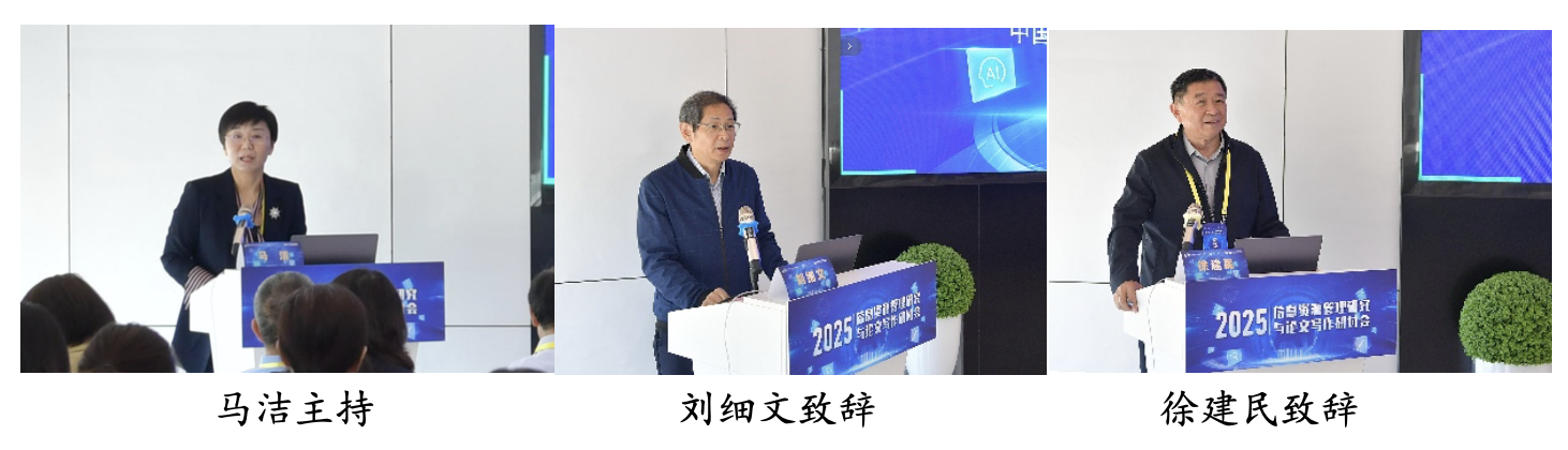 会议开幕式由河北大学管理学院党委书记马洁教授主持。中国科学院文献情报中心主任刘细文、河北大学党委副书记徐建民先后致辞。刘细文主任代表中国科学院文献情报中心和《图书情报工作》杂志社对与会专家和代表表示热烈欢迎。他指出,人工智能技术对信息资源管理领域的学术研究产生了广泛而深远的影响,作为信息资源管理一级学科领域的综合性顶级核心期刊,《图书情报工作》精准把握学术发展的脉搏与方向,所发表的优秀成果不仅为学术研究创新提供了强大的动力源泉,也有力推动了行业实践的转型升级。杂志社每年定期举办的“论文写作与投稿”研修班已成为助力广大科研人员学术成长的重要平台。徐建民书记从河北大学的百年发展历程谈起,他指出,河北大学是全国为数不多的起点建制就是本科院校,河北大学管理学院始终将信息资源管理学科建设作为学院发展的核心和重要战略方向。当前新一代信息技术正深刻重塑社会发展格局,信息资源管理作为连接技术与社会的关键学科,迎来了前所未有的机遇与挑战。此次研讨会的各个分主题,正是对这些时代命题的积极回应。最后,他预祝本次会议取得圆满成功。