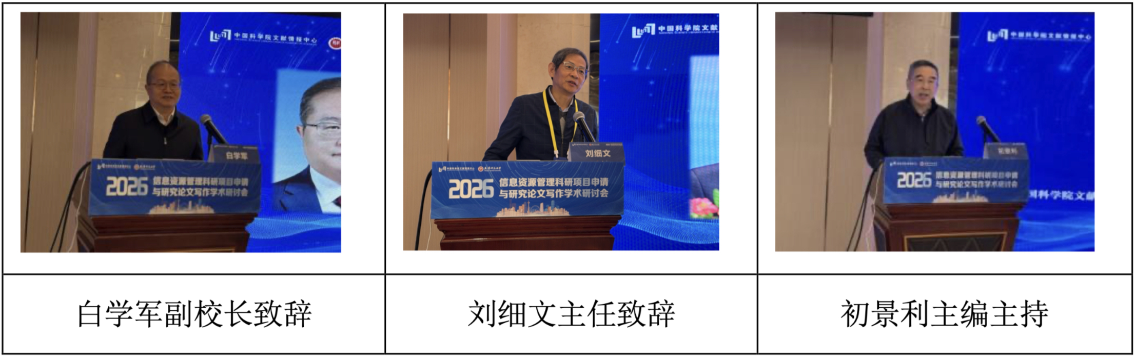 会议开幕式由中国科学院文献情报中心学术委员会主任、《图书情报工作》主编初景利教授主持,天津师范大学党委常委、副校长白学军教授和中国科学院文献情报中心主任刘细文研究员先后致辞。白学军副校长指出,科研成功的关键在于持之以恒的努力,当前国家高度重视中国自主知识体系构建与科技自立自强,青年学者应紧扣这两大方向开展研究,切实提升科研项目申报质量与创新水平。刘细文主任指出,新一代信息技术与人工智能的迅猛发展,为学科发展带来全新机遇与挑战。信息资源管理学科应主动作为、抢抓机遇,坚守学科本位、强化自主思考,以专业优势引领领域未来发展。